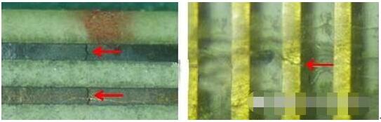 一旦找到確切的銅箔線路斷裂位置,如果還是無(wú)法觀察到斷裂的現(xiàn)象,就試著在顯微鏡下彎曲該位置的軟板,這樣就可以突顯并放大斷裂銅箔的開口了。