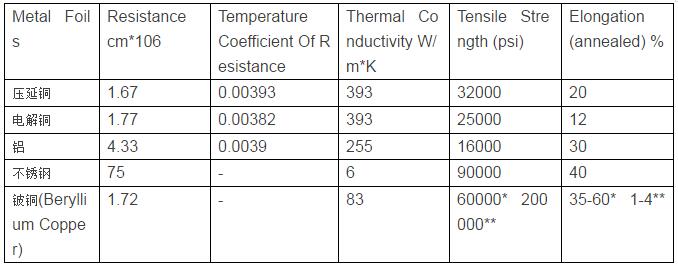 除了銅箔以外,柔性板的其它導(dǎo)體材料還有銅鎳合金(比如Constantan)和導(dǎo)電涂料。導(dǎo)電涂料是導(dǎo)電材料(如銀,碳等)混合聚合物粘接劑(如樹脂)構(gòu)成的漿狀物。導(dǎo)電涂料印刷在介質(zhì)表面,然后再覆蓋起來(lái)。例如銀漿,如果覆蓋絕緣好的話,它的導(dǎo)電性能也是非常不錯(cuò)的。導(dǎo)電涂料與銅箔相比電氣性能稍遜,阻抗系數(shù)也比較高,在某些應(yīng)用柔性場(chǎng)合不適合用它做導(dǎo)體。下表列出各種金屬薄膜的特性比較。