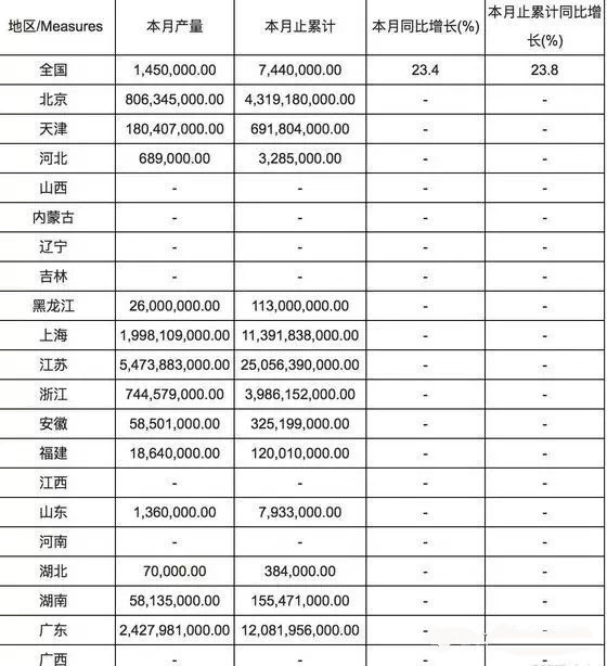 2017年1-6月全國(guó)集成電路產(chǎn)量分省市統(tǒng)計(jì)表