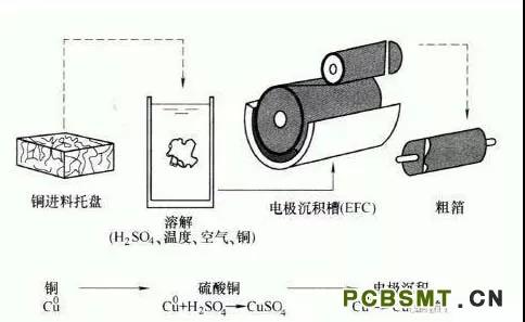 電解過程開始是將銅從硫酸溶液中分解出來,通過溫度和攪動來控制分解率。銅箔的外形和力學(xué)性能可能過使用不同類型的添加劑加以控制。