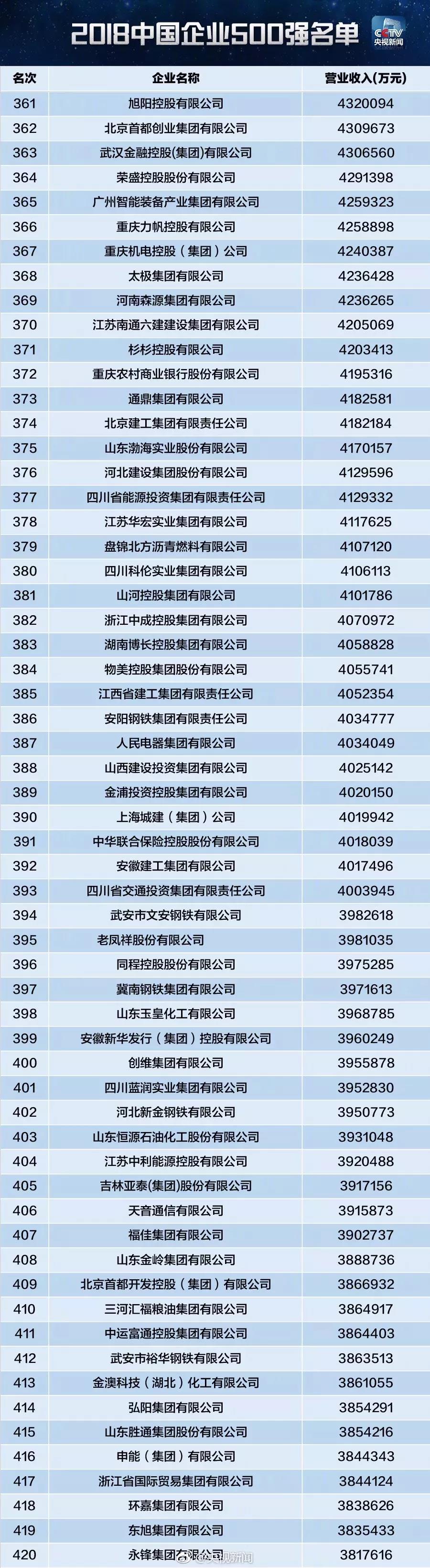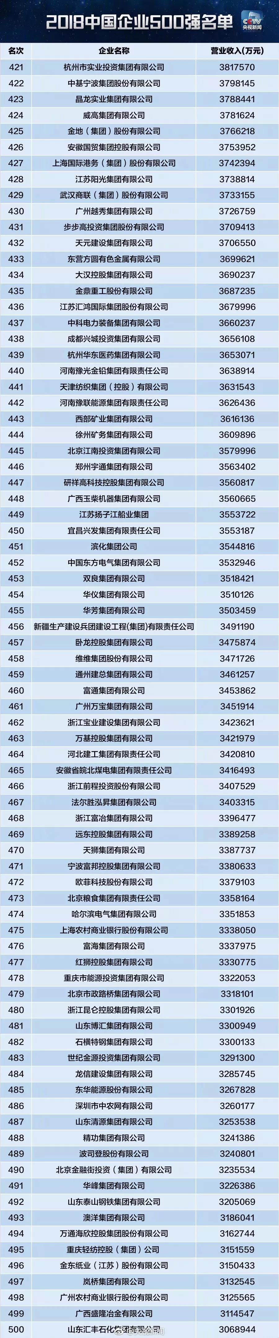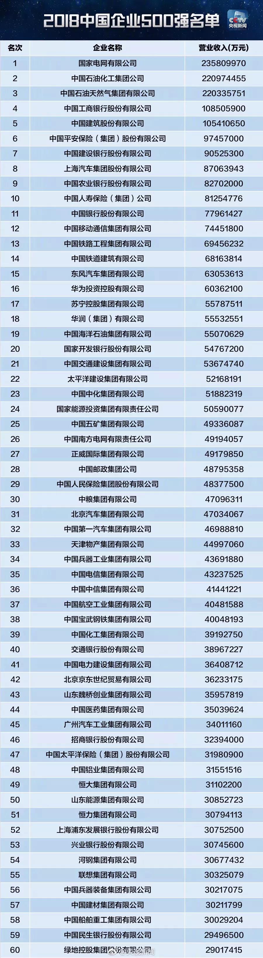 軟板之2018中國(guó)企業(yè)500強(qiáng)新鮮出爐!