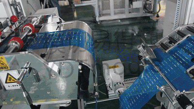 1、放料機(jī)放料藍(lán)色托底離型膜,(注意:此處離型膜為覆合后的雙層離型膜)托底離型膜由主機(jī)進(jìn)料架進(jìn)入上異步模切機(jī),經(jīng)過沖切平臺再進(jìn)入拉料系統(tǒng)。
