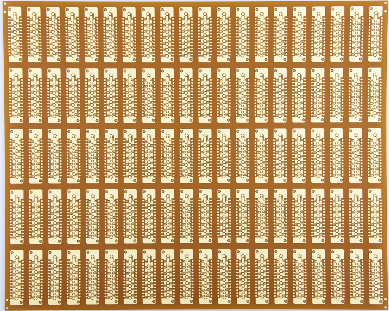 型 號(hào):RM01C00187A層 數(shù):1板 厚:0.12mm材 料:?jiǎn)蚊嬗心z電解銅 厚:1/2 OZ表面處理:沉金2微英寸最小線寬/線距:0.1mm/0.08mm特 點(diǎn):外形復(fù)雜