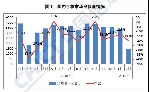 據(jù)軟板廠了解,3月12日上午,中國信通院發(fā)布2019年2月國內(nèi)手機(jī)市場運營分析報告。報告顯示,2月國內(nèi)手機(jī)市場總體出貨量1451.1萬部,同比下降19.9%。