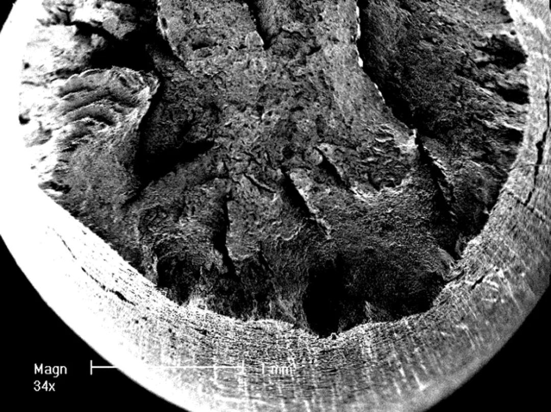 含碳量高的棒材發(fā)生過很多次斷裂,如45#鋼做的軸,使用不太長的時間就發(fā)生斷裂。從斷裂后部件上取樣,進行金相分析,往往找不到產(chǎn)生的原因,即算牽強附會找到了一些原因,也不是實際的原因。