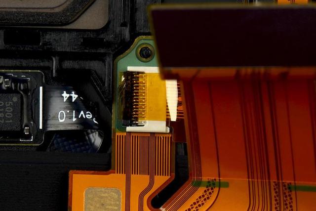 電池有一個(gè)專門的“承托架”墊起,取下電池和“承托架”即可看到電池下方有一大片 BTB 連接軟板。這種設(shè)計(jì)是索尼手機(jī)特有的“八爪魚式”軟板。指紋模塊軟板小編覺(jué)得這個(gè)造型真的很絕~