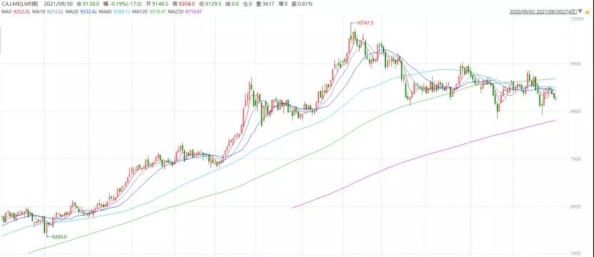 此外,LME銅也一直處于上漲通道,截至9月30日,LME銅報(bào)9111元/噸。