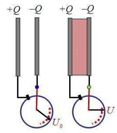 當(dāng)兩個(gè)金屬板的間距越小,正負(fù)電荷的作用力就越大,電容器能充入的電荷就越多,電容的容量也就越大,當(dāng)兩片金屬板的間距非常小時(shí),它們之間的電場(chǎng)非常強(qiáng),很容易擊穿它們之間的空氣,從而導(dǎo)致放電。因此,電容器會(huì)在它們之間插入電介質(zhì),防止擊穿。