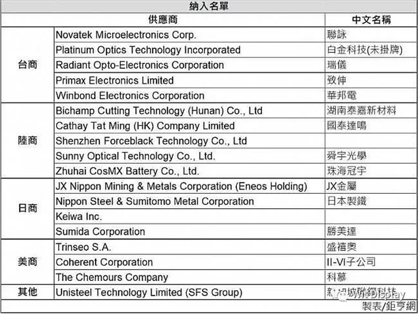 手機(jī)無(wú)線充軟板廠深深了解到,被剔除出蘋果供應(yīng)鏈的8家中國(guó)廠商分別為:CTM Holdings Limited、Consumer HK Holdco II Limited、富馳高科技、凱成科技、深圳市富誠(chéng)達(dá)科技、深藍(lán)材料、正和集團(tuán)、天馬微電子,以及中國(guó)臺(tái)灣的奇鋐、英業(yè)達(dá)、景碩、科嘉及臺(tái)耀科技。值得注意的是,去年科嘉與臺(tái)耀科技才剛加入蘋鏈,今年就被移出。