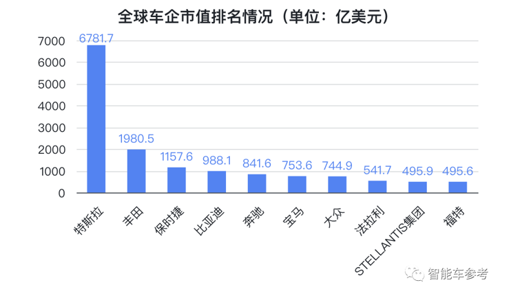 全球車企市值排名情況