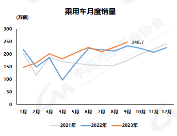 9月,乘用車產(chǎn)銷分別完成249.6萬輛和248.7萬輛,環(huán)比分別增長9.7%和9.4%,同比分別增長3.5%和6.6%。在乘用車主要品種中,與上月相比,四大類車型產(chǎn)銷均呈不同程度增長;與上年同期相比,運(yùn)動(dòng)型多用途乘用車(SUV)產(chǎn)銷呈兩位數(shù)增長,多功能乘用車(MPV)產(chǎn)量下降、銷量增長,基本型乘用車(轎車)和交叉型乘用車產(chǎn)銷呈不同程度下降。