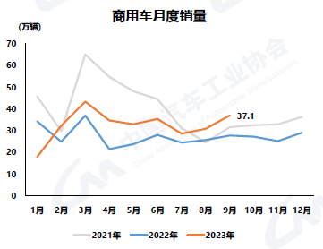 9月,商用車產(chǎn)銷分別完成35.4萬輛和37.1萬輛,環(huán)比分別增長17.9%和19.8%,同比分別增長34.6%和33.2%。在商用車主要品種中,與上月相比,客車、貨車產(chǎn)銷均呈兩位數(shù)增長;與上年同期相比,客車、貨車產(chǎn)銷均呈不同程度增長。