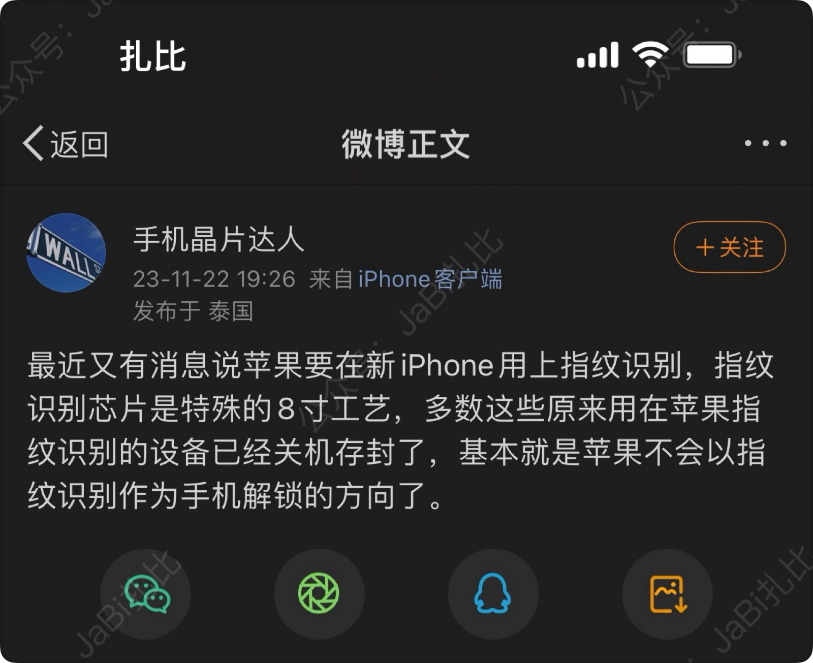 FPC軟板廠了解到,近日,數(shù)碼博主@手機(jī)晶片達(dá)人表示:蘋果的指紋識(shí)別芯片是特殊的8寸工藝,多數(shù)這些原來用在蘋果指紋識(shí)別的設(shè)備已經(jīng)關(guān)機(jī)封存,基本確定蘋果不會(huì)以指紋識(shí)別作為手機(jī)解鎖的方向了。