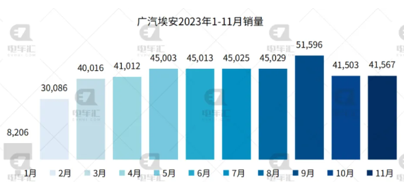 廣汽埃安11月銷量41,567輛,同比增長(zhǎng)45%,環(huán)比上月增加了64輛。1-11月累計(jì)銷量434,056輛,同比增長(zhǎng)80%。昊鉑HT上市半月交付近2,000輛。