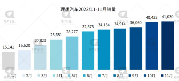 理想汽車11月交付新車41,030輛,同比增長(zhǎng)172.9%,環(huán)比增長(zhǎng)2%。截至2023年11月30日,理想汽車全年累計(jì)交付325,677輛,提前達(dá)成2023年30萬(wàn)輛銷量目標(biāo)。