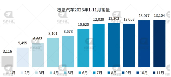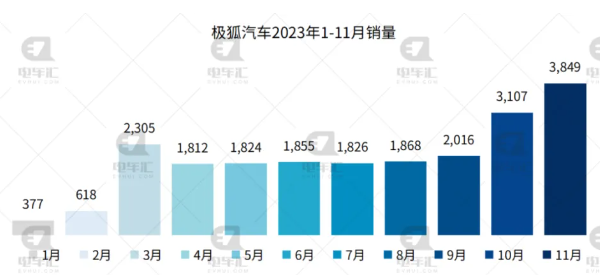 極狐汽車11月交付新車3,849輛,環(huán)比增長(zhǎng)24%。今年1-11月,極狐汽車?yán)塾?jì)銷量21,457輛。