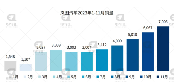 嵐圖汽車11月交付新車7,006輛,同比增長(zhǎng)365%,環(huán)比增長(zhǎng)15%。今年1-11月,嵐圖汽車?yán)塾?jì)交付量40,535輛,同比增長(zhǎng)129%。