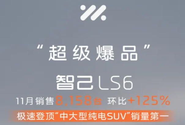 智己汽車11月共計(jì)銷售8,703輛,其中智己LS6銷售8,158輛,環(huán)比增長(zhǎng)125%。
