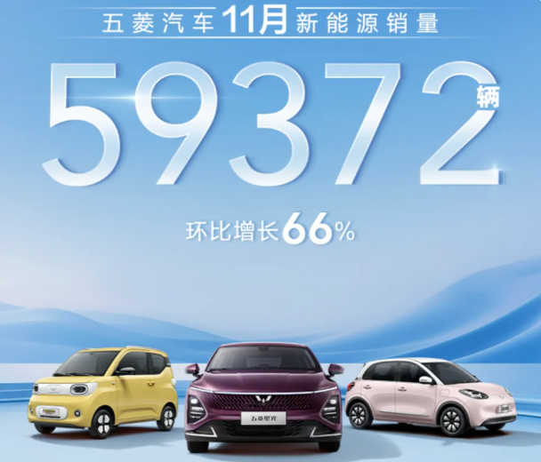 FPC軟板廠了解到,五菱汽車11月新能源銷量59,372輛,環(huán)比增長(zhǎng)66%。