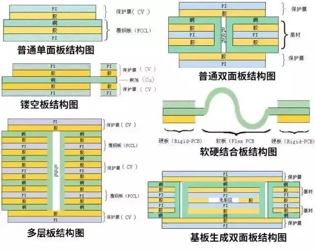 絕緣薄膜形成了電路的基礎(chǔ)層,粘接劑將銅箔粘接至了絕緣層上。在多層設(shè)計中,它再與內(nèi)層粘接在一起。它們也被用作防護性覆蓋,以使電路與灰塵和潮濕相隔絕,并且能夠降低在撓曲期間的應(yīng)力,銅箔形成了導電層。