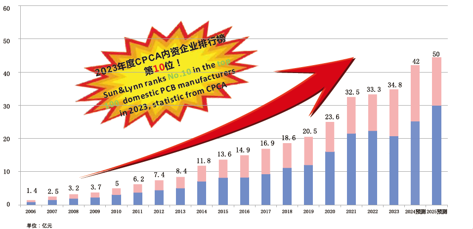 深聯(lián)電路成立于2002年,在廣東深圳、江西贛州及廣東珠海設(shè)三個制造基地,員工總?cè)藬?shù)5000人,目前珠海工廠籌建中,預(yù)計今年年底Q3投產(chǎn),深聯(lián)自2004年起銷售額每年保持10%的增長,至2023年銷售額達到34.8億人民幣,在CPCA內(nèi)資百強線路板企業(yè)中排名第10位,已發(fā)展成為中國頗具價值的PCB制造企業(yè),為通訊、電源、新能源、安防、工控、醫(yī)療、汽車等領(lǐng)域的全球客戶提供PCB、HDI、軟硬結(jié)合板、FPC和FPCBA的一站式專業(yè)服務(wù)。
