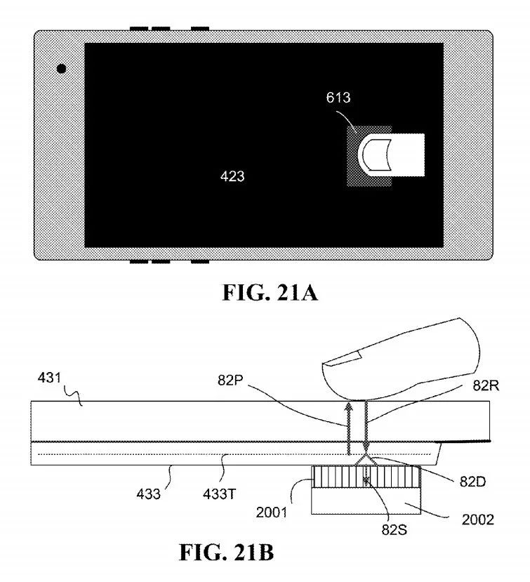 FIG.21A和FIG.21B從俯視和側(cè)視兩個角度說明了指紋識別傳感器放置的地方。