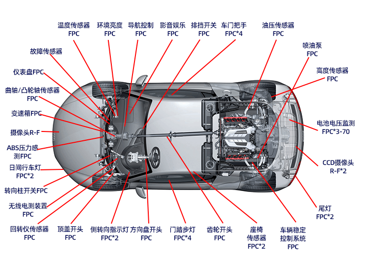 FPC:英文全拼Flexible Printed Circuit ,中文意思是柔性印制線路板,簡稱軟板。采集線是新能源汽車BMS系統(tǒng)所需配備的重要部件,實現(xiàn)監(jiān)控新能源動力電池電芯的電壓和溫度;連接數(shù)據(jù)采集和傳輸并自帶過流保護功能;保護汽車動力電池電芯,異常短路自動斷開等功能。