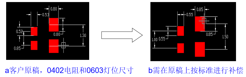 主鍵的燈/電阻/電容焊盤要按標準設計補償。