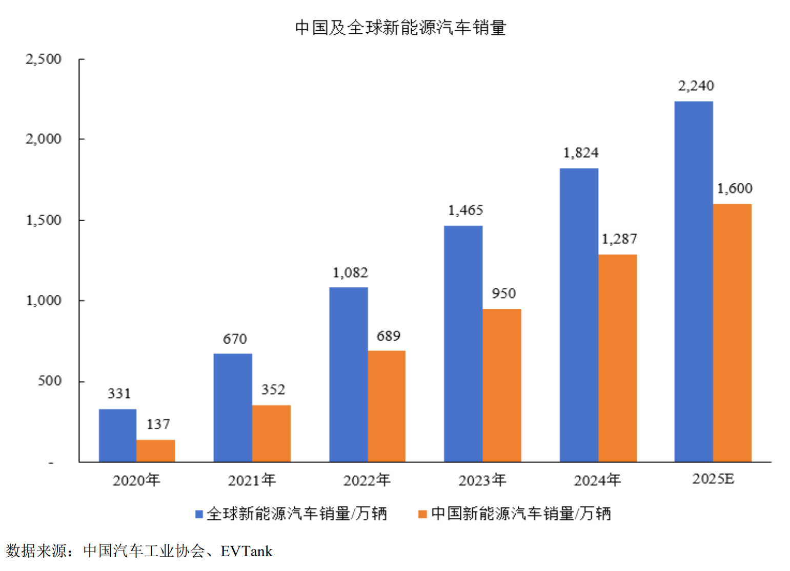 2024年度,全球及中國(guó)汽車(chē)銷(xiāo)量分別為9,531萬(wàn)輛和3,144萬(wàn)輛,同比分別增長(zhǎng)2.6%、4.5%,全球及中國(guó)新能源汽車(chē)產(chǎn)銷(xiāo)分別為1,824萬(wàn)輛、1,287萬(wàn)輛,同比分別增長(zhǎng)24.5%、35.5%,繼續(xù)保持快速增長(zhǎng),新能源汽車(chē)銷(xiāo)量占汽車(chē)總銷(xiāo)量的比例分別達(dá)到19.1%、40.9%,中國(guó)成為引領(lǐng)全球汽車(chē)產(chǎn)業(yè)轉(zhuǎn)型的重要力量。